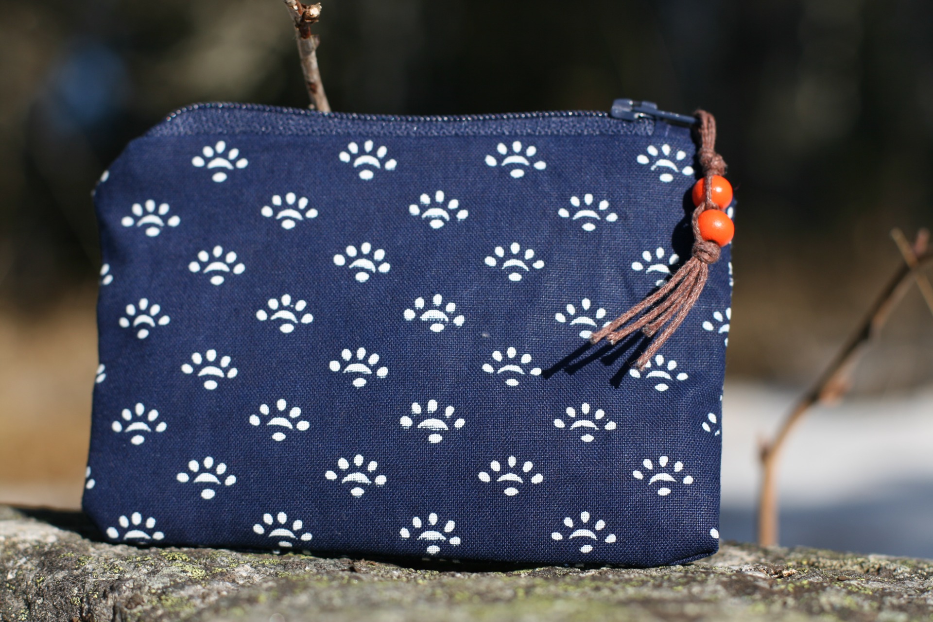 Peněženka s ťapkovým vzorem s ozdobnými korálky.